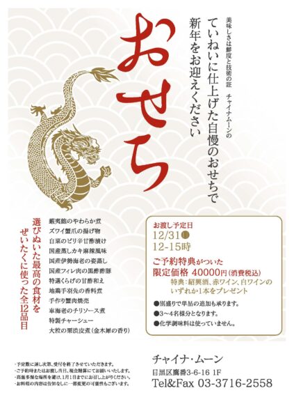 完売御礼 /チャイナ・ムーンの2024年おせち